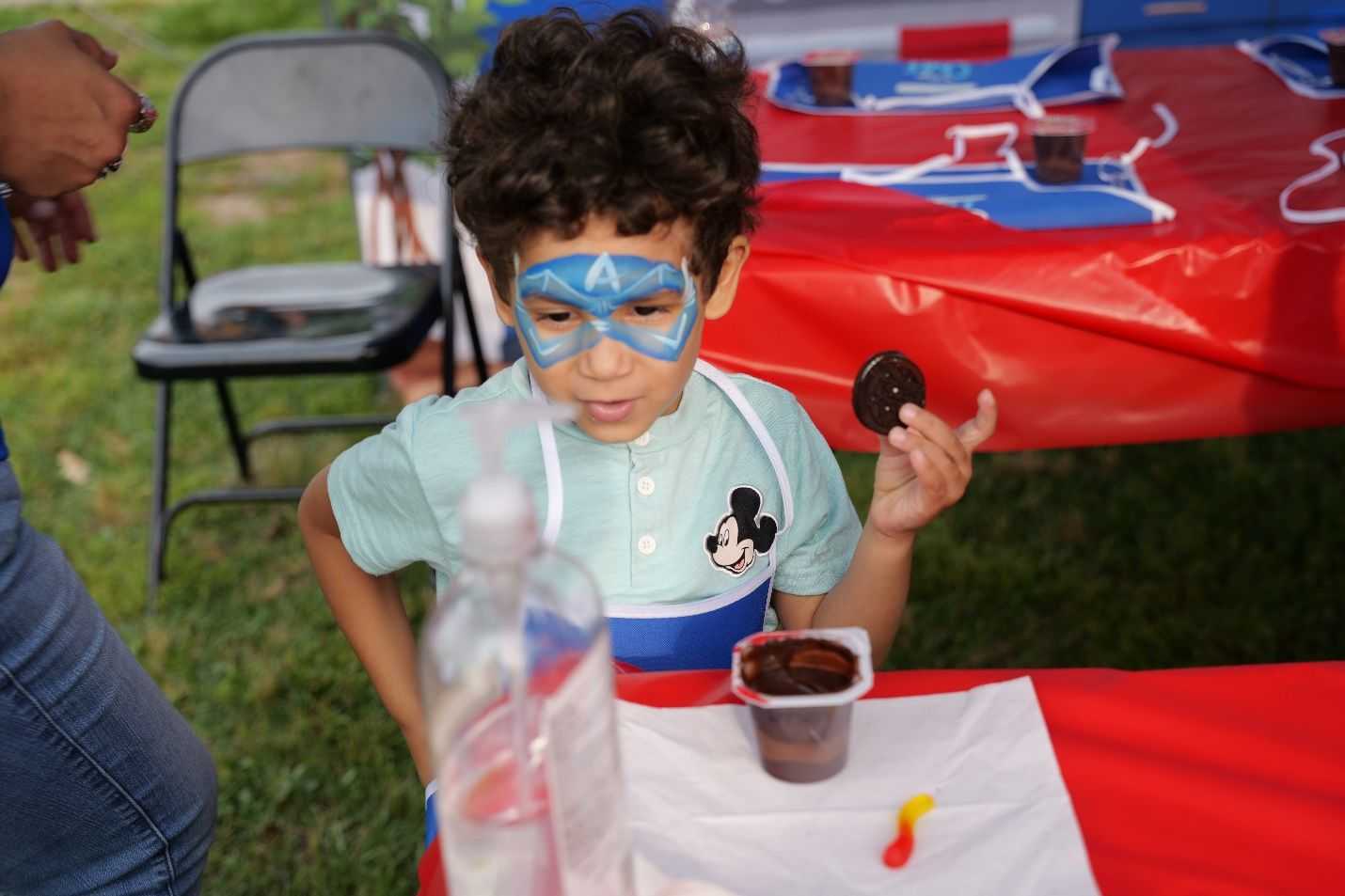 Residents will need to grab food tickets and get their hand stamped from the booth outside to get free food.